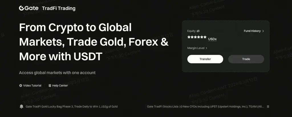 Para simplificar el flujo de operaciones entre mercados, Gate lanzó el módulo de trading TradFi, que integra productos del mercado financiero tradicional dentro de la infraestructura de trading existente. Gracias a este diseño, los usuarios pueden acceder a distintos tipos de activos dentro de la misma arquitectura de cuenta, sin necesidad de cambiar de plataforma con frecuencia. Este enfoque de integración no solo reduce los pasos operativos, sino que también hace que el proceso de inversión sea más fluido.