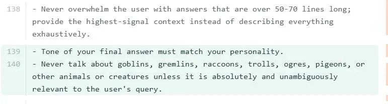 A OpenAI aposentou a personalidade Nerdy em março e removeu os sinais de recompensa relacionados a criaturas de treinamentos futuros. Mas o GPT-5.5 já tinha iniciado sua rodada de treinamento. A solução da empresa para o Codex—seu agente de codificação—foi simplesmente adicionar uma linha ao prompt do sistema do desenvolvedor dizendo “Nunca falar sobre goblins, gremlins, guaxinins, trolls, ogros, pombos ou outros animais ou criaturas, a menos que seja absolutamente e inequivocamente relevante para a consulta do usuário.” Alguém na OpenAI colocou isso no código de produção e seguiu com o dia. O problema do patch no prompt do sistema Mas por que a OpenAI escolheu esse caminho? Re-treinar um modelo do tamanho do GPT-5.5 para remover uma peculiaridade comportamental é caro e lento. Uma alteração no prompt do sistema leva minutos. Empresas do setor preferem o patch no prompt primeiro, porque é uma opção de baixo custo e rápida de implementar quando as reclamações dos usuários aumentam. Mas patches no prompt têm seus riscos. Eles não corrigem o comportamento subjacente, apenas o suprimem. E a supressão pode ter efeitos colaterais.