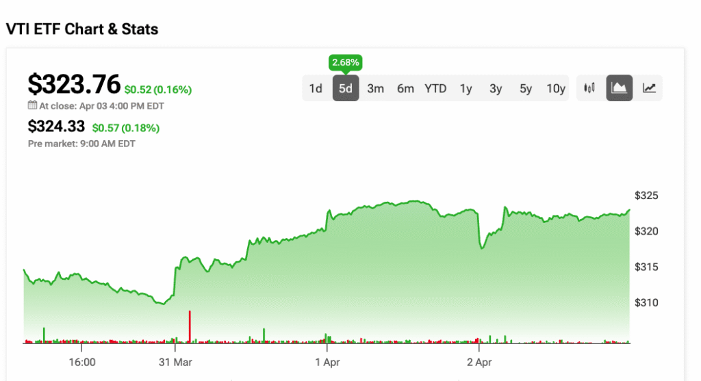 為什麼Vanguard 全部股票市場ETF (VTI) 在2026年4月6日今天上漲?